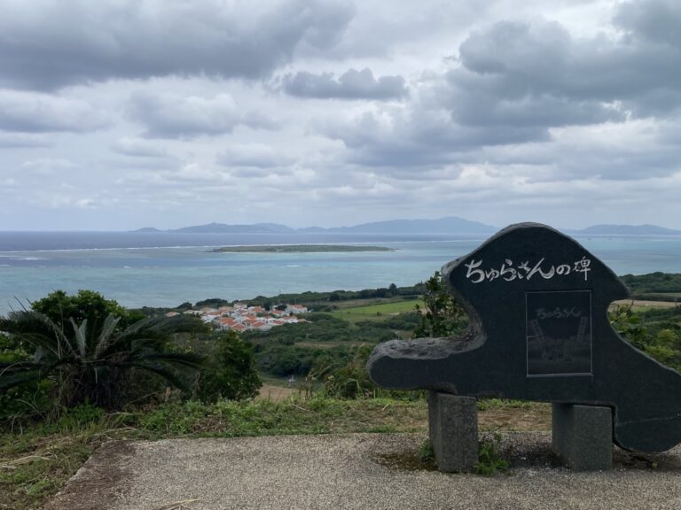 小浜島・西大岳の頂に、黒い石碑が静かに海を向いています。「ちゅらさんの碑」と刻まれたその碑は、NHK連続テレビ小説「ちゅらさん」のゆかりをいまに伝えるものです。