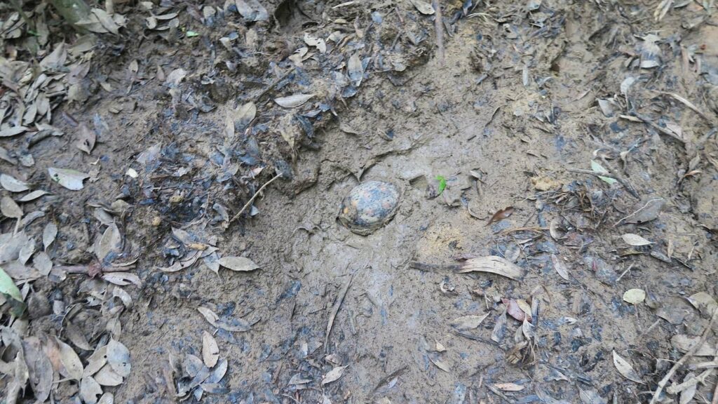 泥の中に、セマルハコガメが隠れています。危なく見落としてしまいそうです。