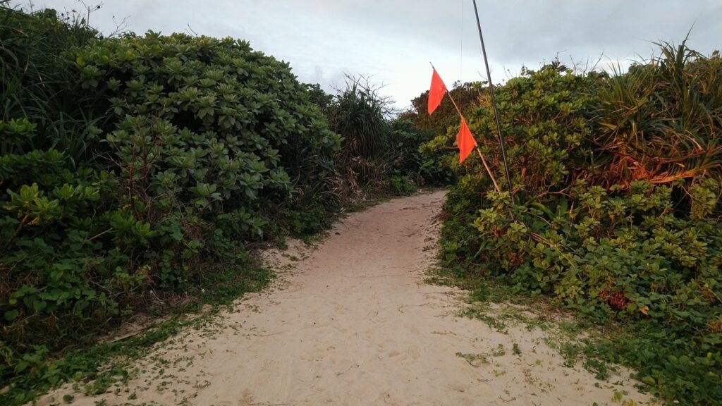 小浜島のやらます浜(トゥマール浜)に続く道。道を抜けたらどんな風景に出会えるのかワクワクします。
