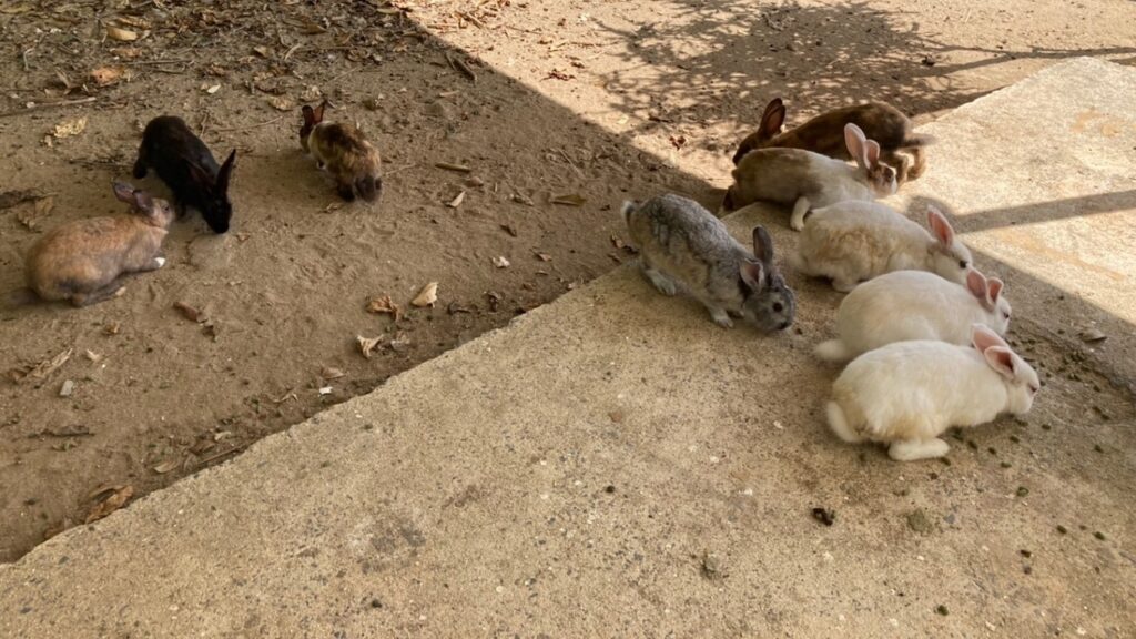 加屋真島にはたくさんのウサギやニワトリがいます。きれいな海と可愛い動物と無人島というなかなか味わえない雰囲気と…たくさんの癒しが詰まっています。