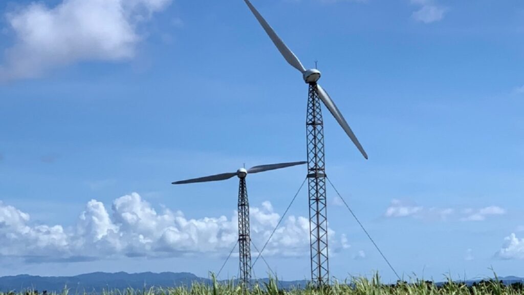 波照間には風力発電の風車があります。可倒式で倒すことも出来るので、台風への対策もばっちりです。