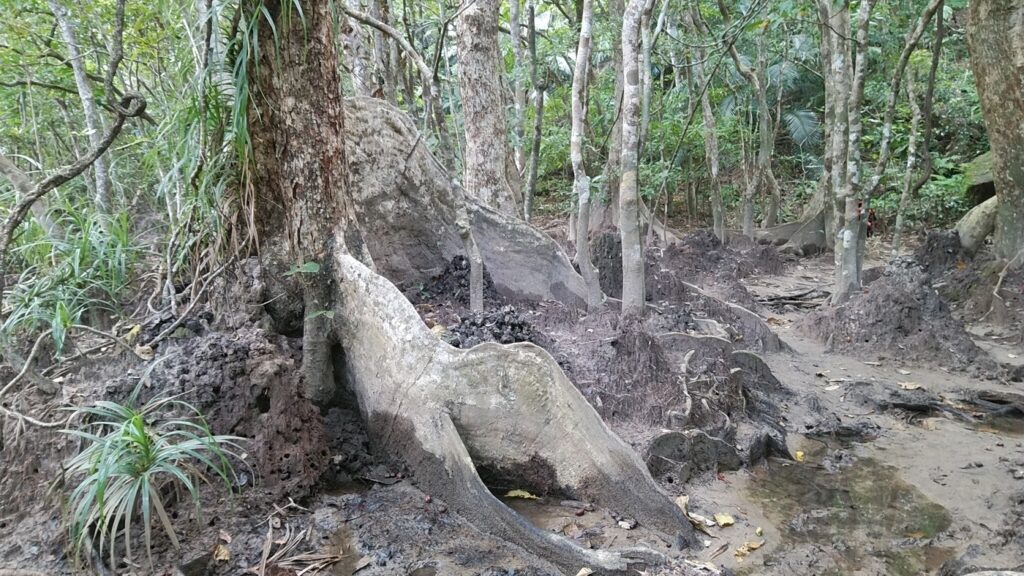 立派な板根で迫力があります。西表島にはサキシマスオウノキ群落や樹齢400年にもなるサキシマスオウノキもあり大迫力の自然の姿がたくさん見られます。