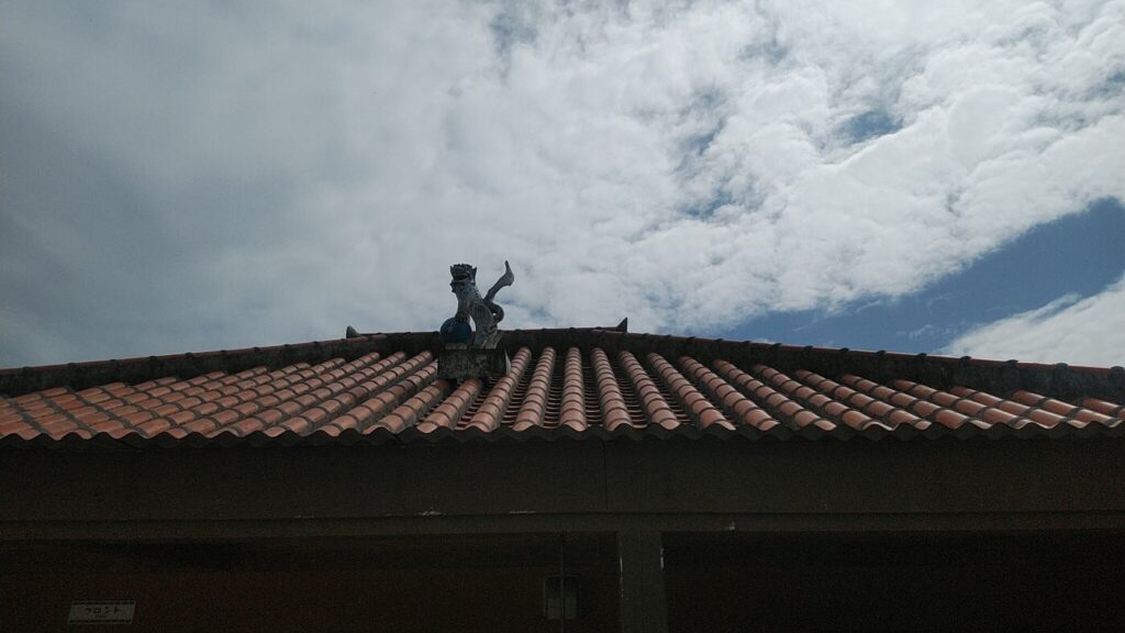 竹富町の家の屋根の上にはシーサーが乗っています。シーサーの下には仏壇のある部屋があり、家と共に、ご先祖様をお守りしています。ご先祖様を大切にする沖縄ならではの風景です。