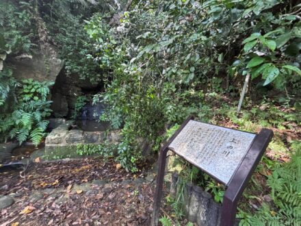 船浮集落からイダの浜へ向かう途中にある「上の川(ウイヌカー)」。ここはかつて、湧き水として住民の生活水に利用されていた場所です。現在は水の流れはありませんが、石