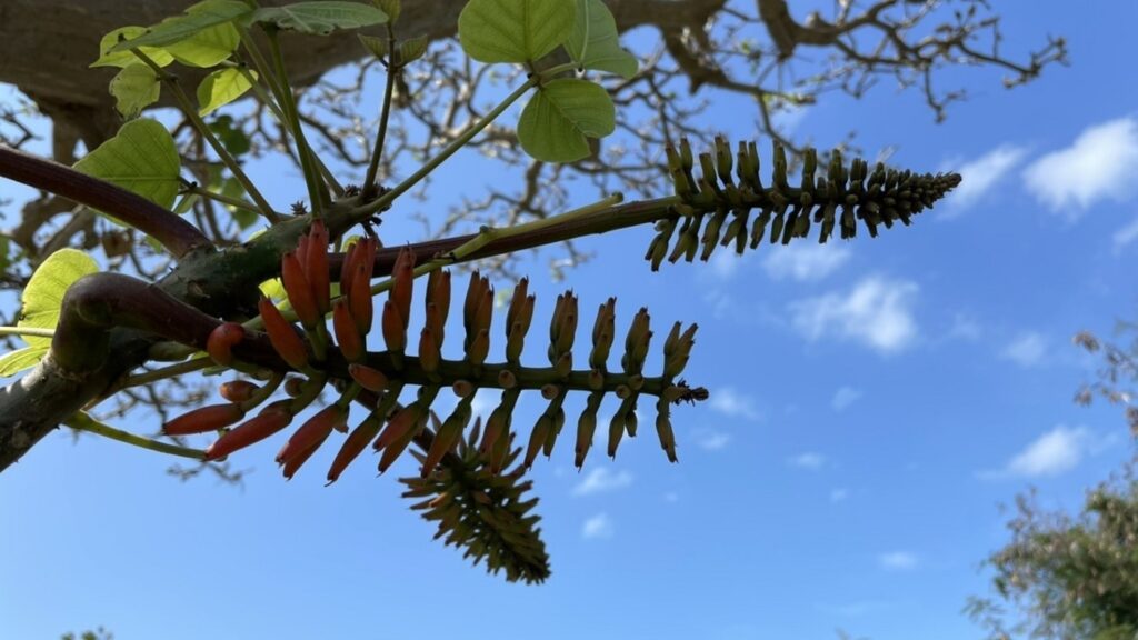 デイゴの季節になってきました。「デイゴがたくさん咲く年は大きい台風が来る」とよく聞きますが、今年はどうなるでしょうか。