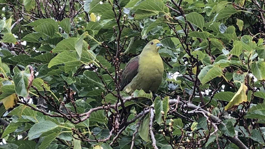 ん?誰か笛の練習でもしているのかな?いいえ、あれはアオバトの鳴き声です。鳩間では「ベーカベー」と表現し、呼び名にもなっています。あなたにはどう聞こえますか?
