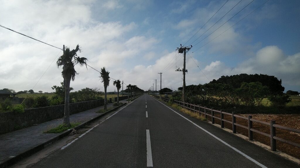 のどかな風景が広がる黒島。まっすぐな一本道を自転車で駆け抜けると、気分も爽快です。