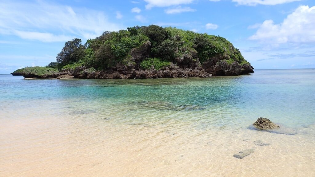 西表島・白浜港の近くにある、静かな湾の風景。 湾になっているため風や波の影響を受けにくく、 海はいつもどこか穏やかで、時間までゆっくりと流れているようです。