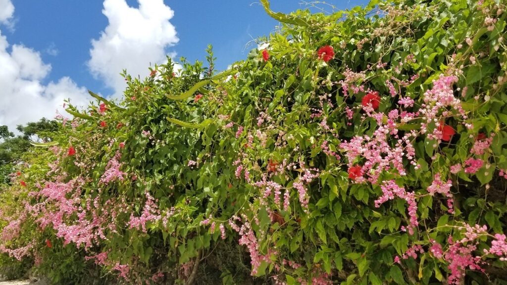 沖縄の県花にも指定されている「デイゴ」。かの有名な「島唄」の歌詞にも登場していますね。竹富島では少しずつ花が咲き始めています。見頃は3~5月頃で、初夏に真っ赤で
