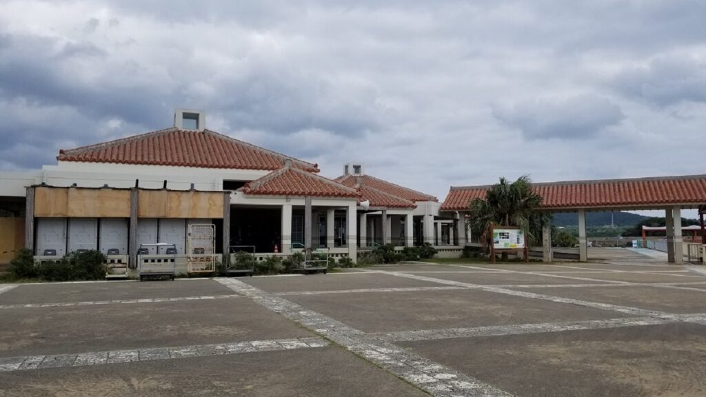 西表島大原港。赤瓦が立派な建物の中には、売店やお手洗いが設置されています。なかまりんターミナルという愛称もあります。