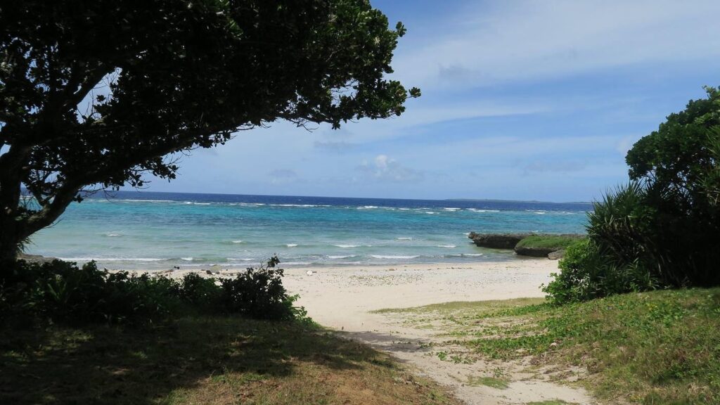 黒島の集落から少し離れた場所に、仲本海岸は静かに広がっています。遠浅の海と白い砂浜、水平線へと続く景色が、島ならではの穏やかな空気を感じさせます。 仲本海岸は大