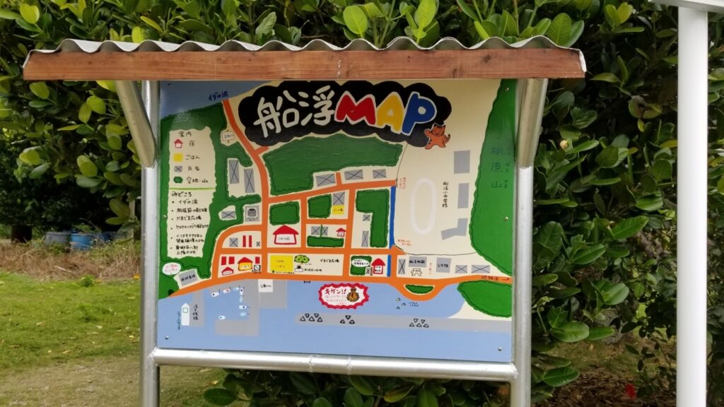 船浮集落内で手作りマップを発見しました。楽しい気分になれる、地元愛を感じる可愛いマップです。