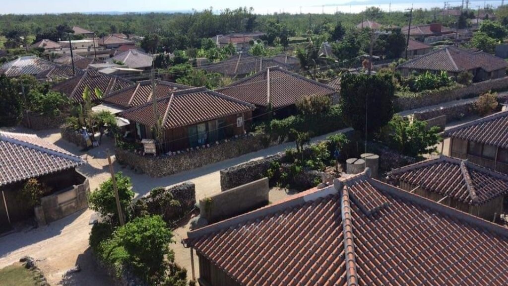 竹富島の町並みは国の重要伝統的建造物群に指定されています。昔ながらの沖縄らしい原風景が広がり、晴れた日の赤瓦と青空のコントラストが美しい町並みです。