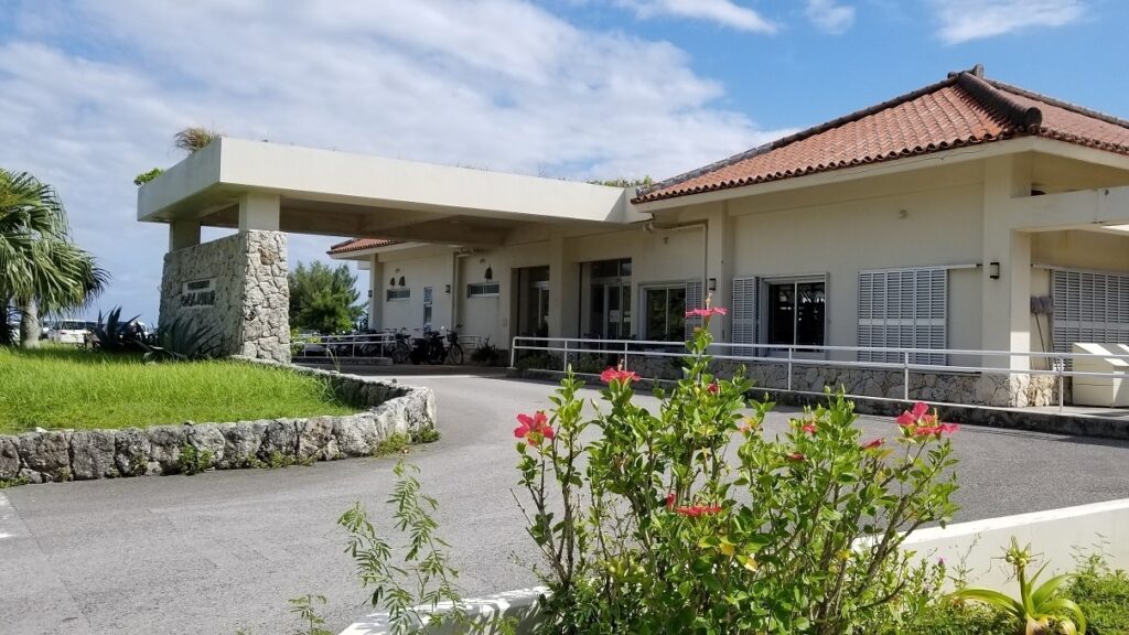 竹富島のターミナル、てぇどぅんかりゆし館です。石垣島から約10分で着きますが、降りた瞬間に島独特のゆったりした心地よい空気を感じられます。