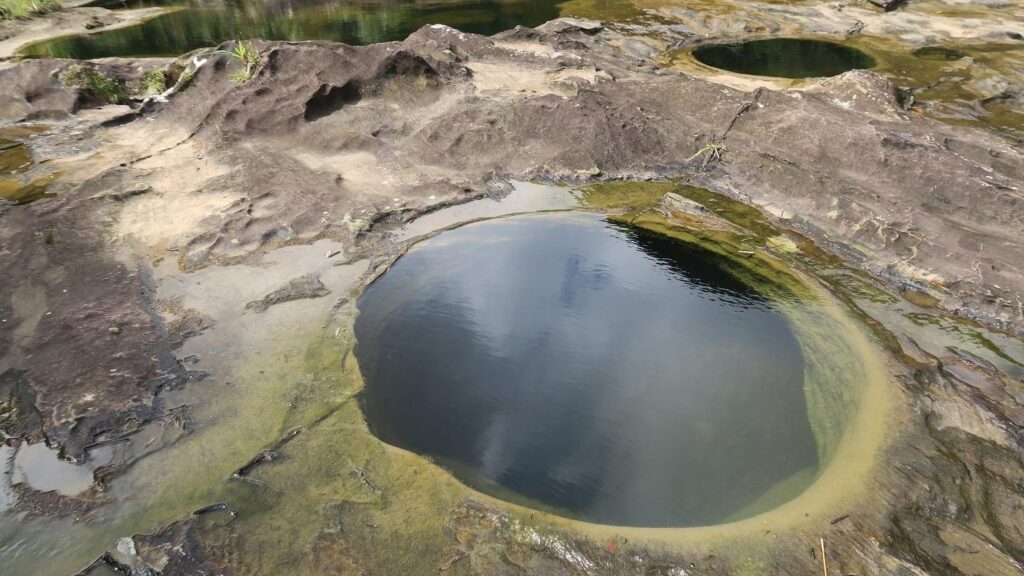 川の中に大きく開いた穴はポットホールと呼ばれるもので、川の流れによって長い年月をかけて形成されるものです。ここまで大きな穴になるには、どれほどの年月がかかるのでしょうか。