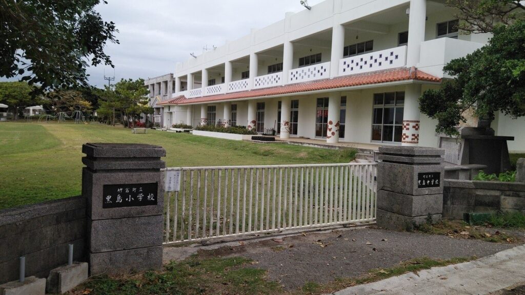 黒島小中学校の校舎は、ミンサー柄がとても目を引いて可愛いです。ミンサーとは『いつ(5つ)の世(4つ)までも末永く』という思いが込められた、八重山に伝わる伝統的な織物です。八重山では至る所でミンサー柄を目にします。